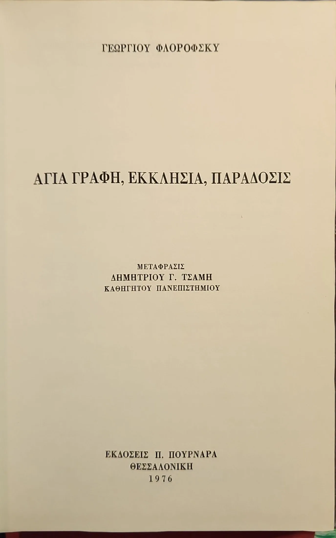 Το έργο «Αγία Γραφή, Εκκλησία, Παράδοσις» αποτελεί έναν από τους σημαντικότερους σταθμούς της ορθόδοξης θεολογίας του 20ού αιώνα, καθώς ο Φλωρόφσκι, ηγετική μορφή της «νεοπατερικής σύνθεσης», προσφέρει μια βαθιά ανάλυση του τρόπου με τον οποίο η Ορθόδοξη Εκκλησία αντιλαμβάνεται την αποκάλυψη του Θεού, την αυθεντία των Γραφών και τον ρόλο της Παράδοσης. Ο συγγραφέας απορρίπτει τον τεχνητό διαχωρισμό ανάμεσα στην Αγία Γραφή και την Ιερά Παράδοση, υποστηρίζοντας ότι η Γραφή δεν είναι ένα αυτόνομο ιστορικό τεκμήριο, αλλά ένα βιβλίο που γεννήθηκε μέσα στην Εκκλησία και μπορεί να ερμηνευτεί σωστά μόνο μέσα σε αυτήν, ενώ η Παράδοση ορίζεται ως η συνεχή παρουσία του Αγίου Πνεύματος, μια χαρισματική και όχι απλώς αρχαιολογική αρχή.