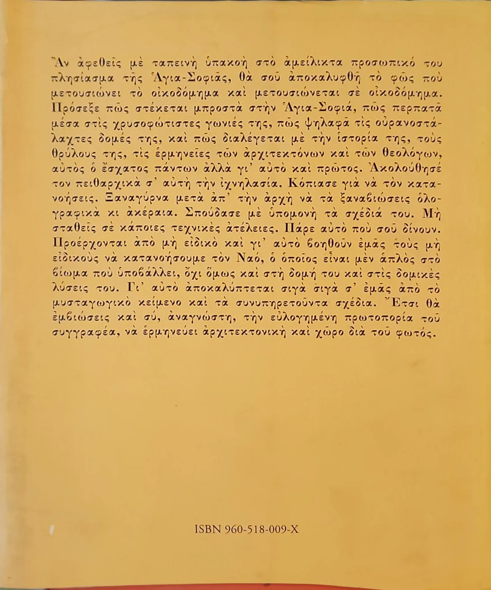 Ετικέτες: Αγία Σοφία, Αρχιτεκτονική Ναών, βιβλία, Βυζαντινή Αρχιτεκτονική, Βυζαντινή ιστορία, Θεολογία του Φωτός, Κωνσταντινούπολη, Μεταχειρισμένα Βιβλία, Ορθοδοξία, Τέχνη και Θρησκεία