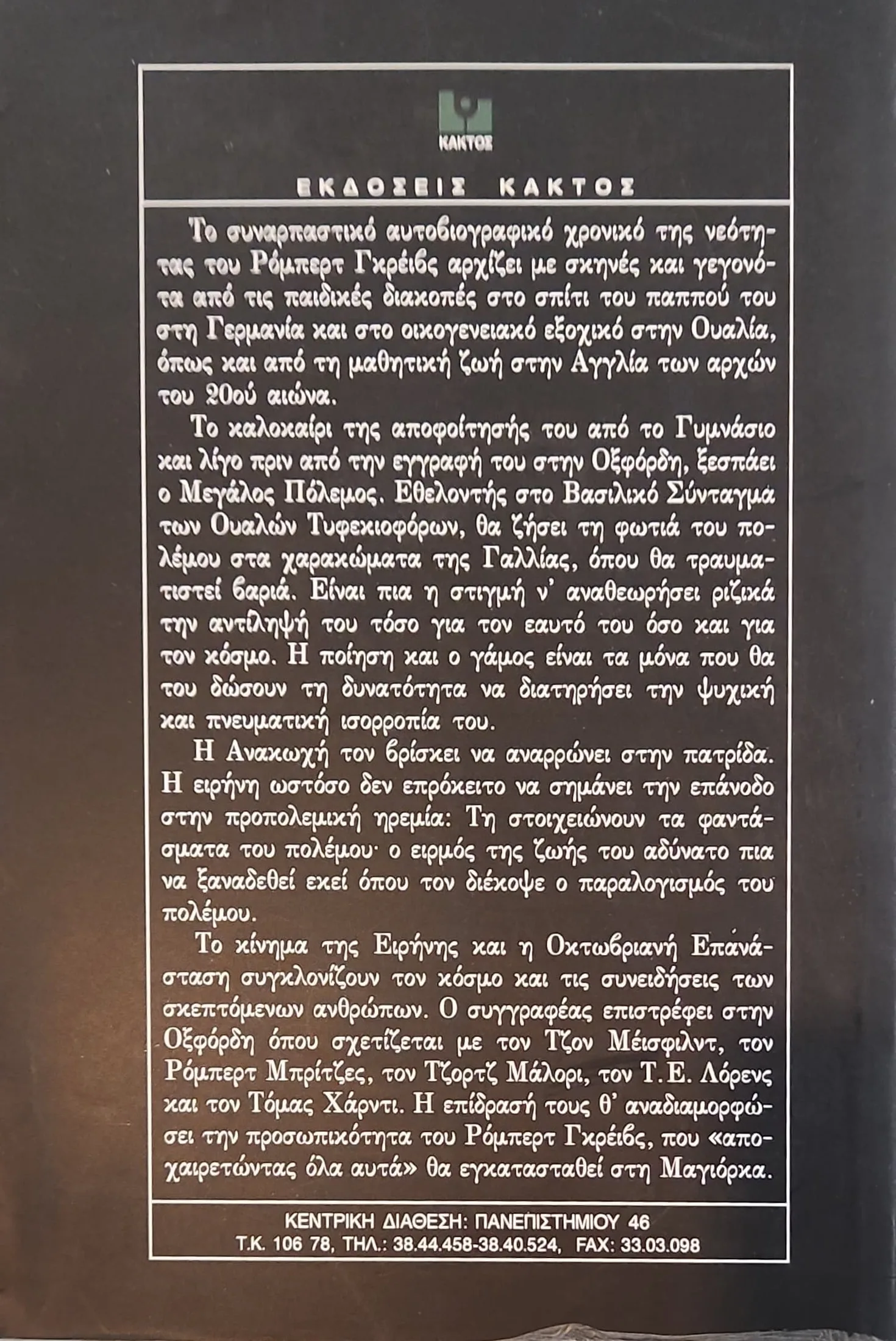 Η καρδιά του έργου βρίσκεται στα δύο κεντρικά τέταρτα του: στη βίαιη και οδυνηρή κατάδυση στα χαρακώματα της Γαλλίας, όπου τραυματίστηκε βαριά. Ο Γκρέιβς φέρνει τον πόλεμο «ανατριχιαστικά κοντά στο σπίτι και μέσα στο μυαλό και την καρδιά» του αναγνώστη, καθιστώντας το βιβλίο ένα κλασικό πολεμικό ντοκουμέντο και μία από τις πιο εντυπωσιακές απεικονίσεις της «σκοτεινής καρδιάς του πολέμου». Η ποίηση και ο γάμος είναι τα μόνα που δίνουν στον τραυματισμένο άνδρα τη δυνατότητα να διατηρήσει την ψυχική και πνευματική του ισορροπία.