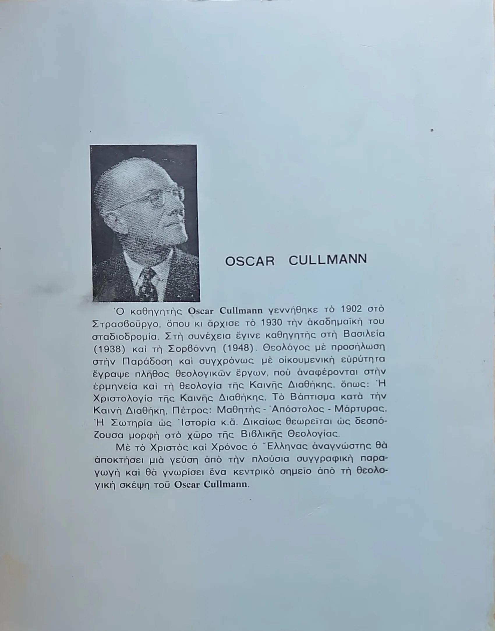 Το βιβλίο «Χριστός και Χρόνος: Η Πρώτη Χριστιανική Χρονολογία» του Όσκαρ Κούλμαν (Όσκαρ Κούλμαν, 1902-1999, με σπουδές κλασικής φιλολογίας και θεολογίας στο Στρασβούργο) αποτελεί ένα θεμελιώδες έργο της θεολογίας της Καινής Διαθήκης. Ο στόχος του έργου, όπως αναφέρεται στον πρόλογο, είναι να προσδιορίσει το κεντρικό στοιχείο στο χριστιανικό μήνυμα. Ο συγγραφέας επισημαίνει τον πειρασμό να θεωρούμε ως «πυρήνα» ή «ουσία» ό,τι μας ελκύει προσωπικά και ως εξωτερικό «πλαίσιο» αυτό που μας είναι ξένο. Ωστόσο, η προσπάθεια για τον προσδιορισμό αυτού του κεντρικού στοιχείου πρέπει να θεωρείται το ένα μεγάλο καθήκον της επιστήμης της Καινής Διαθήκης και ίσως ολόκληρης της Χριστιανικής Θεολογίας.