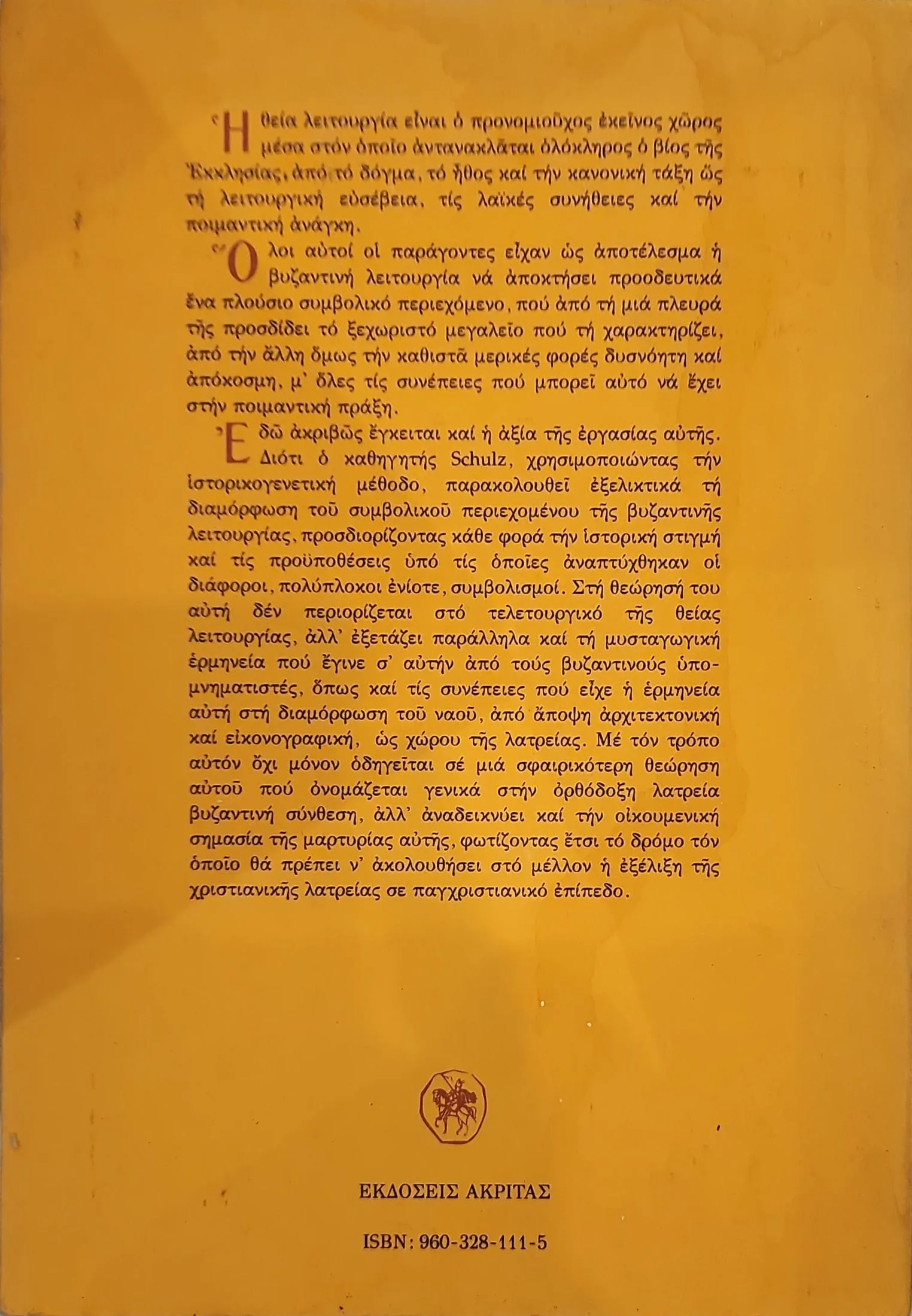 Ολιστική θεώρηση: Ο Schulz παρουσιάζει μια ευρύτερη εικόνα της βυζαντινής λατρείας, τη γνωστή ως “βυζαντινή σύνθεση”.