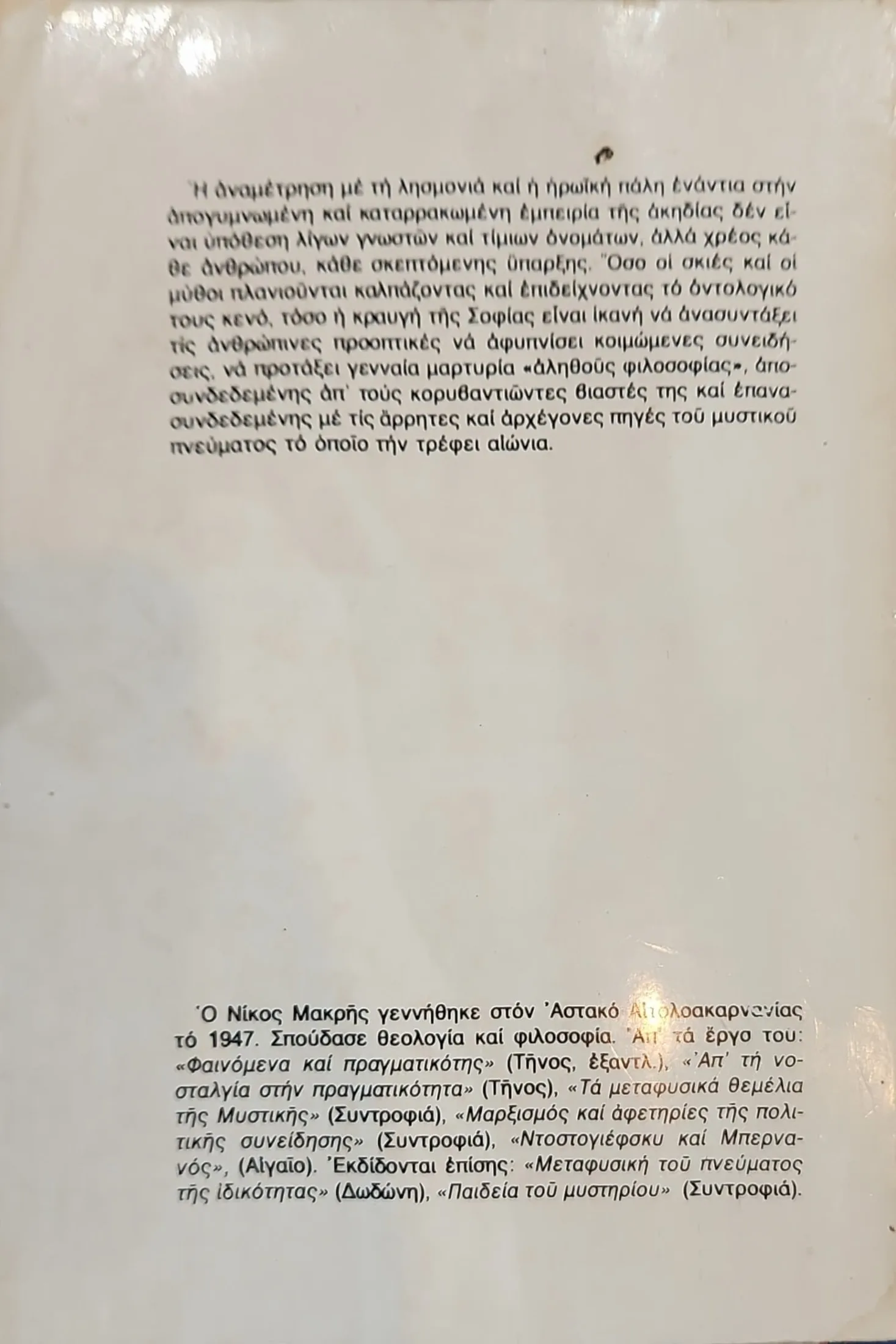 Ετικέτες: βιβλία, Δοκίμιο, Ηθική, Θεολογία, Κάλλος, Μεταφυσική, Μυστικισμός, Νίκος Μακρής, Ουσία., ύπαρξη, φιλοσοφία