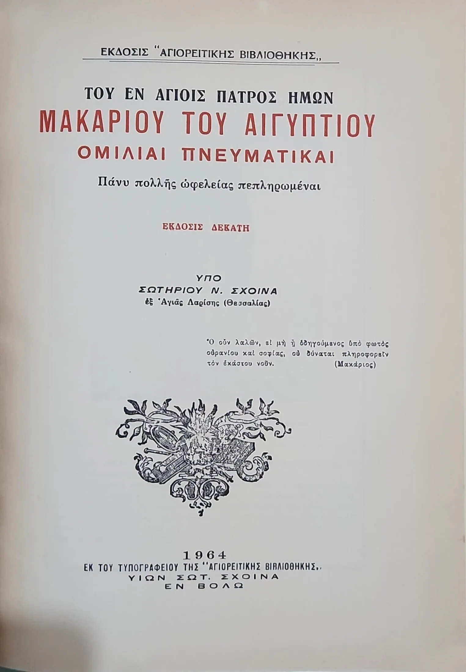 Ο Άγιος Μακάριος, μαθητής του Μεγάλου Αντωνίου και πιστός σύμμαχος του Αγίου Αθανασίου, μεταφέρει μέσα από τις ομιλίες του τη βιωματική εμπειρία της ερήμου. Το κείμενο δεν είναι μια στεγνή δογματική πραγματεία, αλλά μια ζωντανή συνομιλία με τον Θεό, εστιασμένη στην κάθαρση της καρδιάς και την έλευση του Αγίου Πνεύματος στην ψυχή του πιστού.