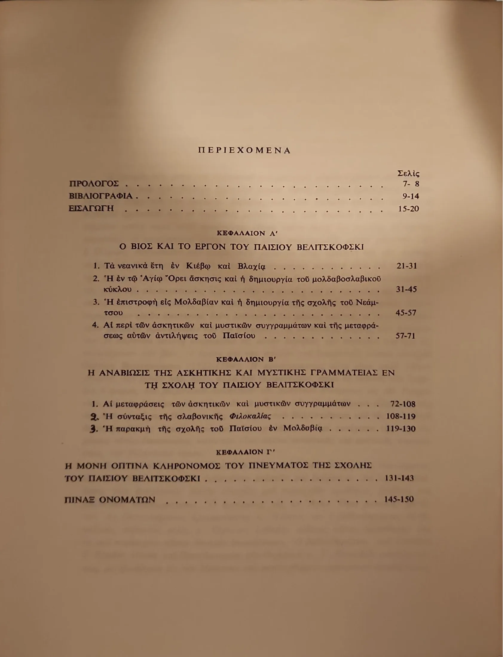 Ο Παΐσιος (1722-1794) υπήρξε κομβική μορφή της Ορθόδοξης Ανατολής και ιδρυτής της Ασκητικοφιλολογικής Σχολής (ή Σχολής του Παΐσιους). Η Σχολή επικεντρώθηκε στην αναβίωση της Νηπτικής Παράδοσης και στην πνευματική αναγέννηση μέσω της μελέτης των Πατέρων της Εκκλησίας. Αυτό το πνευματικό κέντρο ξεκίνησε στο Άγιο Όρος και μεταλαμπαδεύτηκε στη Μολδαβία (Μονή Νέου-Αγίου Γεωργίου), επηρεάζοντας βαθιά τον μοναχισμό σε περιοχές όπως η Ρουμανία και σε μορφές όπως ο Άγιος Κοσμάς ο Αιτωλός.