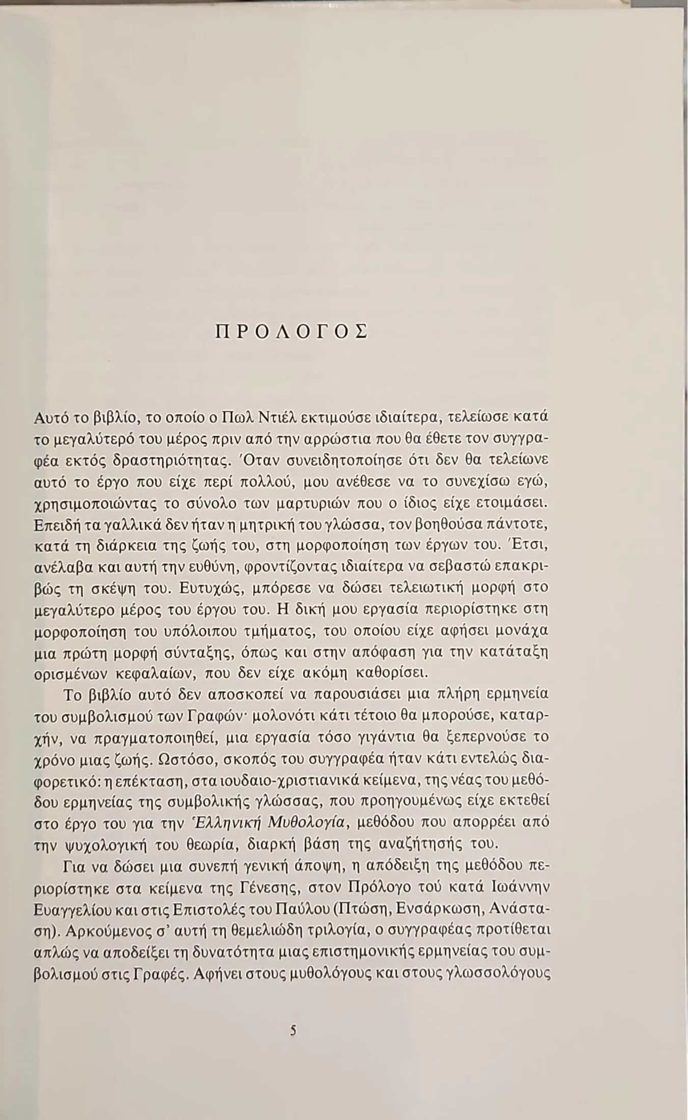 Ο Πωλ Ντιέλ, επιχειρεί μια βαθιά ανάλυση της συμβολικής γλώσσας των ιουδαιο-χριστιανικών κειμένων. Ο συγγραφέας μεταφράζει τον μύθο σε ψυχολογική ορολογία, αποκαλύπτοντας την κρυμμένη ψυχολογική του σημασία.