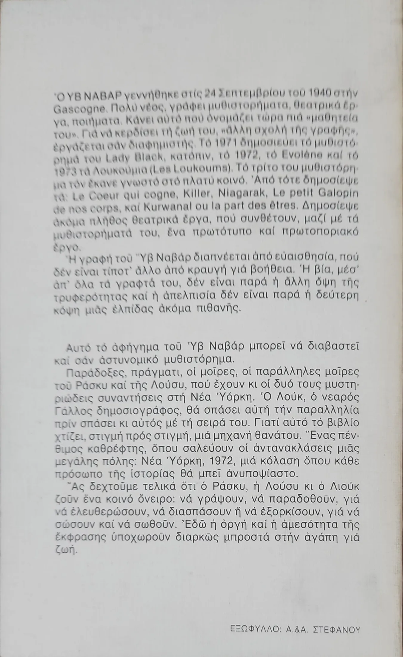 Βυθιστείτε στη Νέα Υόρκη της δεκαετίας του 1970: μια πόλη στα πρόθυρα της χρεοκοπίας, που σαπίζει εκ των έσω και αντιμετωπίζει την αδιαφορία της ομοσπονδιακής κυβέρνησης. Μια πόλη αφιλόξενη και σκληρή, που μέσα από τα ξένα μάτια του Υβ Ναβάρ αποκαλύπτει τη θαμμένη, ωμή πλευρά της Αμερικής.