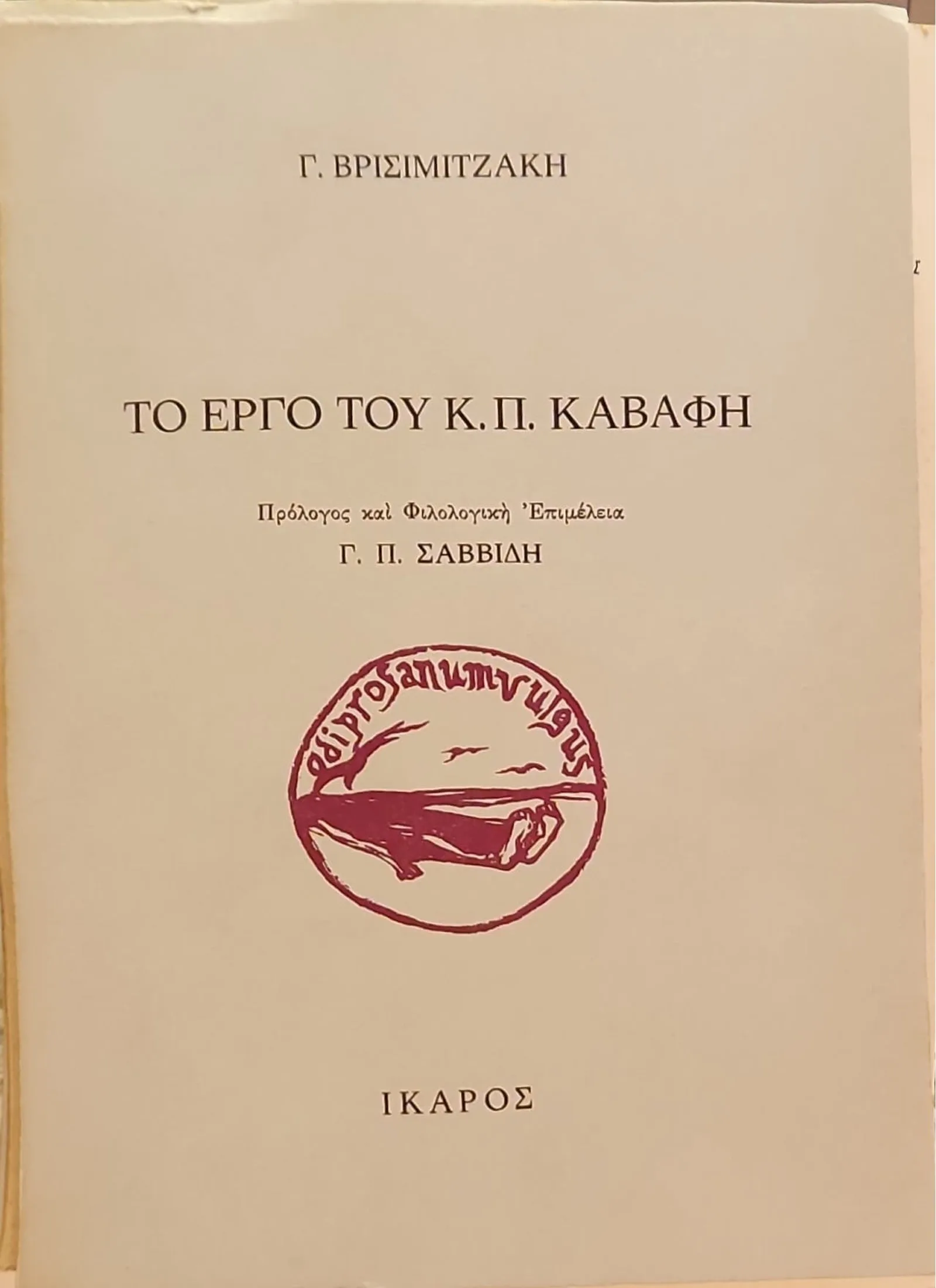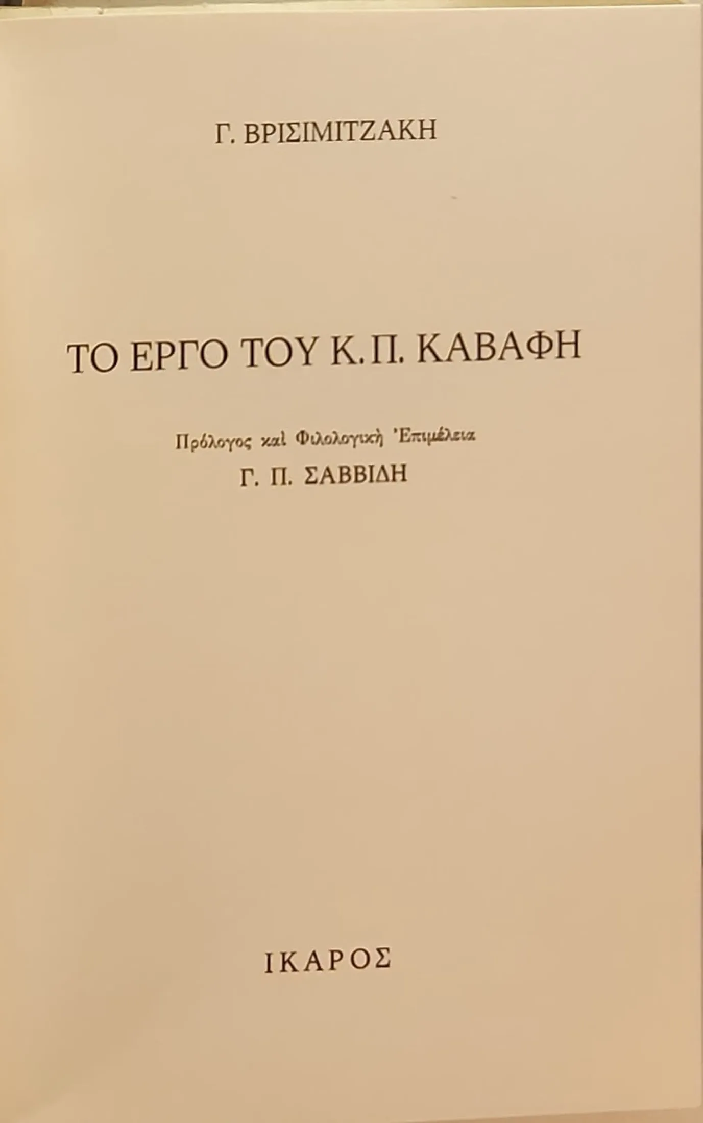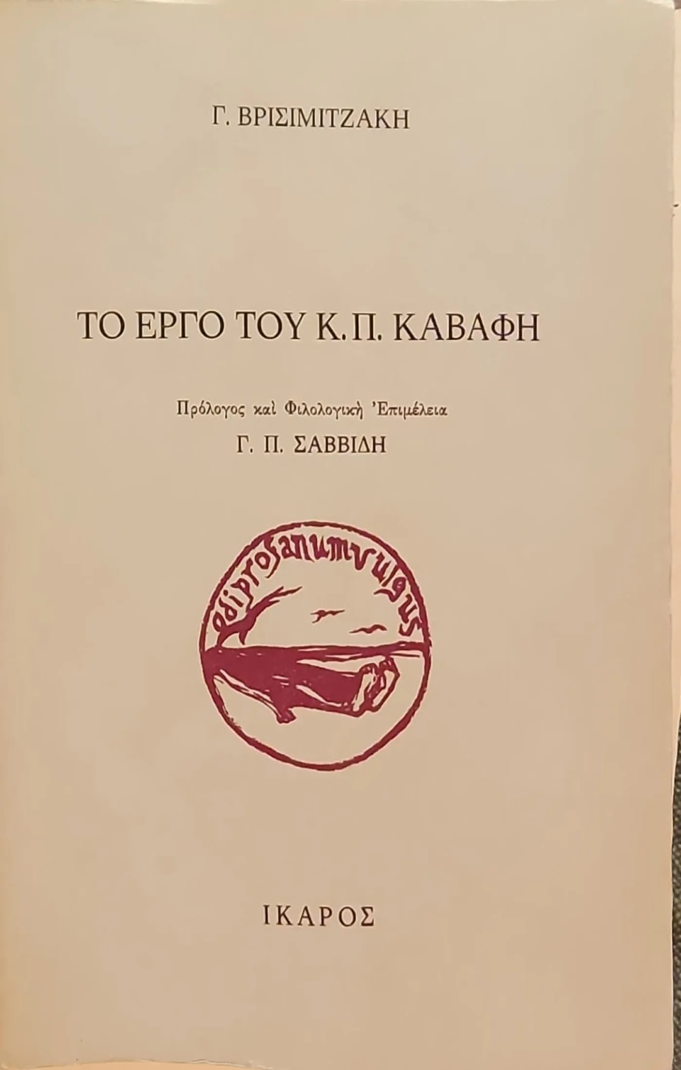 Η συλλογή κειμένων του Γιώργου Βρισιμιτζάκη που αποτελούν «Το έργο του Κ. Π. Καβάφη» αναδεικνύει τη συμβολή ενός ανθρώπου που υπήρξε ένας από τους πιο οξυδερκείς στοχαστές της αλεξανδρινής περιόδου. Ο Βρισιμιτζάκης, ζώντας στην καρδιά της πνευματικής ακμής της ελληνικής παροικίας στην Αίγυπτο, προσέγγισε τον Καβάφη με τρόπο ρηξικέλευθο για την εποχή του. Από το καλοκαίρι του 1912 έως την άνοιξη του 1913 έζησε στο Βιαρέτζιο της Ιταλίας, όπου συνδέθηκε με τους Ιταλούς αναρχικούς. Επιστρέφοντας στην Αλεξάνδρεια ασχολήθηκε με φιλολογικές μελέτες, έγραψε μια κριτική για το έργο του Κωνσταντίνου Καβάφη η οποία και εκδόθηκε από τον Ίκαρο το 1969.